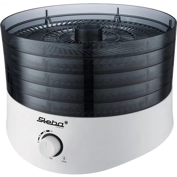 Der Dörrautomat ED 4 von Steba eignet sich zum Trocknen und Haltbarmachen von Obst, Gemüse und Kräutern. Durch den Temperaturregler ist die Bedienung sehr einfach. Die gewünschte Temperatur kann von 40°C bis 70°C reguliert werden. Der langlebige Motor mit Lüfterflügeln ist mit einer Leistung von 280 Watt ausgestattet. Der ED 4 verfügt über fünf BPA-freie Aufsätze mit einem Durchmesser von 24 cm, die auch einzeln verwendbar sind. Art.-Nr.: 1594599