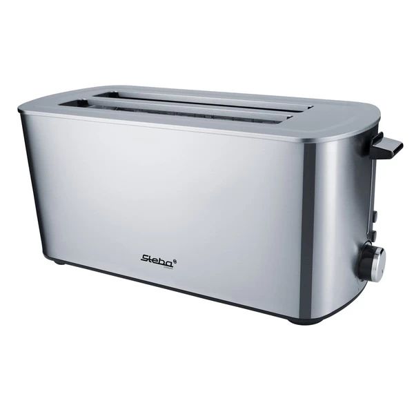 Der Doppel-Langschlitztoaster TO 21 Inox von Steba passt mit seinem klassischen Edelstahl-Design perfekt in jede moderne Küche. Der Toaster röstet vier Scheiben Toast oder zwei große Brotscheiben gleichzeitig, wobei sich der Bräunungsgrad mittels Drehregler stufenlos einstellen lässt. Mit der automatischen Brotscheibenzentrierung wird immer eine optimale beidseitige Bräunung erreicht. Auf dem mitgelieferten Brötchenaufsatz lassen sich Brötchen oder leckere Croissants problemlos aufbacken. Egal ob Toasten, Auftauen oder Aufwärmen, der TO 21 Inox ist ein echtes Multitalent. Das Anti-Fingerprint Edelstahlgehäuse und die herausziehbare Krümelschublade machen auch die Reinigung spielend einfach. Der integrierte Überhitzungsschutz und die Stopp-Taste zum jederzeitigen Unterbrechen des Toastvorgangs gewährleisten stets sicheres Toasten.Art.-Nr.: 1574885