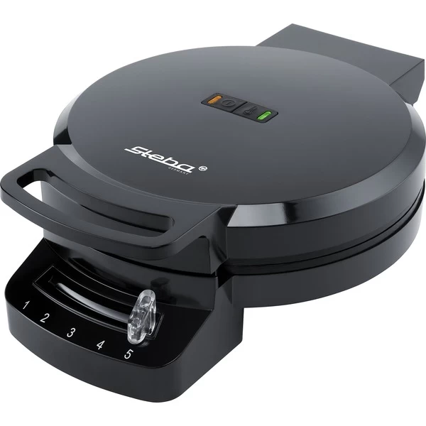 Das Waffeleisen WE 1 von Steba eignet sich zur Zubereitung einer großen Waffel in Herzform (Backfläche Ø 16,5cm). Mit dem Waffeleisen WE 1 gelingen sie immer perfekt, genau wie man es mag, leicht gebräunt oder knusprig. Über einen Regler kann die Temperatur stufenlos geregelt werden. Für Bedienkomfort sorgen die Betriebs- und Temperaturkontrollleuchte. Die Antihaftbeschichtung sorgt dafür, dass der Teig an den Backplatten nicht haften bleibt, ermöglicht fettarmes Backen und erleichtert die Reinigung. Das schlichte und zeitlose schwarze Design passt perfekt in jede Küche.Art.-Nr.: 1755929