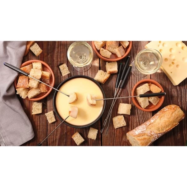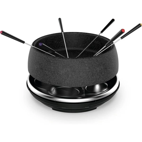 Ideal für köstliche gemeinsame Momente mit der Familie und mit Freunden, Cheese’n’co Raclette & Fondue stellt Käse in den Mittelpunkt Ihres Essens! Mit 6 Funktionen in einem einzigen Gerät bietet es eine große Bandbreite an leckeren Rezepten rund um den Tisch: Raclette, Kartoffeln mit Käse, Käsefondue, Tartiflette, Käseschachtel und Käsepfannkuchen. Dank des kompakten Alles-in-Einem-Design lässt es sich einfach verstauen und bietet alles, was man dazu braucht: 6 Schalen, 6 Fondue-Gabeln, 1 Topf, und einen Glasdeckel. Darüber hinaus weist die Antihaftbeschichtung ein elegantes Steineffekt-Design auf, das sich hervorragend auf jedem Tisch macht! Um die Reinigung zu erleichtern sind einige Teile spülmaschinengeeignet.Art.-Nr.: 1488390