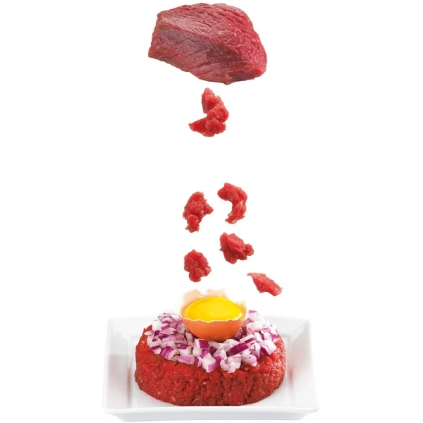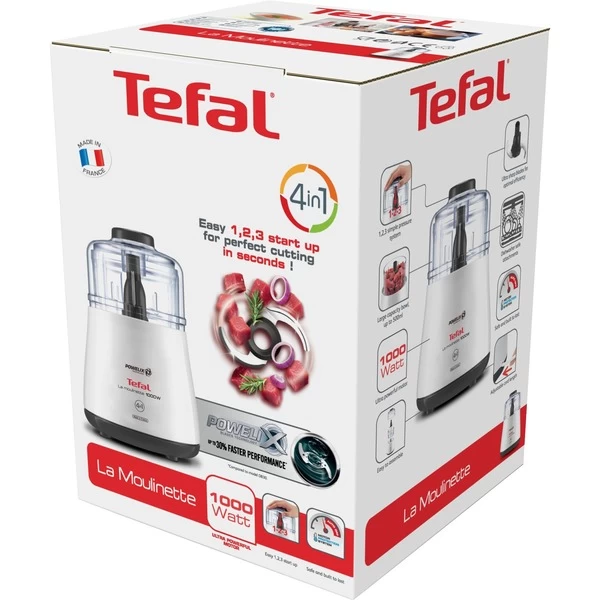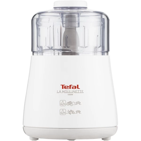 Der Tefal La Moulinette 1000 ist ein Zerkleinerer mit einfacher Bedienung nach dem „“ Prinzip durch Drücken auf den Deckel. Mit dem Tefal La Moulinette 1000 macht man aus 300 Gramm Fleisch innerhalb von sechs Sekunden Hackfleisch oder zerkleinert Zwiebeln, Knoblauch, Kräuter, Nüsse oder Käse. Durch den transparenten Kunststoffbehälter kann man die Zubereitung problemlos beobachten. Der Zerkleinerungsbehälter ist auch für die Zubereitung von Pesto oder Guacamole geeignet.Art.-Nr.: 1309215