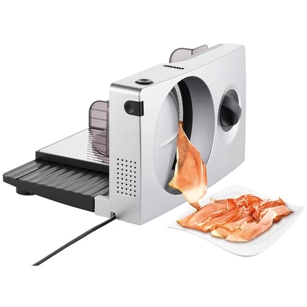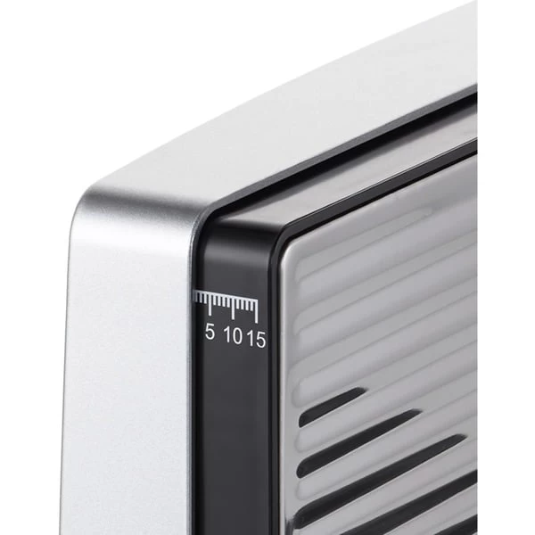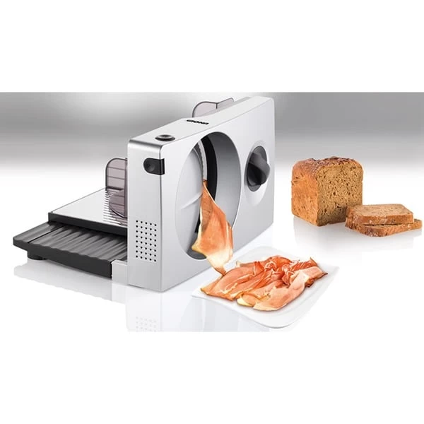 Von A wie Aufschnitt bis Z wie Zucchini: Wenn verschiedenste Lebensmittel in Scheiben geschnitten werden sollen, ist der Allesschneider Curve White unentbehrlich. Mit dem einfach entnehmbaren 17 cm Edelstahl-Wellenschliffmesser liefert der Allesschneider Curve White gleichmäßige Scheiben. Ob hauchfein bei Salami, Schinken und Co. oder dicker für knusperfrisches Brot oder köstlichen Braten, die Schnittbreite kann stufenlos von 0 bis 15 Millimeter eingestellt werden. In Sachen Sicherheit lässt der Allesschneider keine Wünsche offen. Für Sicherheit sorgen die Antirutschfüße sowie der Sicherheitsschalter mit Kindersicherung. Und der abnehmbare Restehalter mit Fingerschutz sorgt für das problemlose Schneiden ohne Reststücke – ohne Gefahr für die Fingerkuppen! Wird er gerade nicht benötigt, lässt er sich ganz einfach zusammenklappen und platzsparend im Küchenschrank unterbringen. Durch die integrierte Kabelaufbewahrung wird dafür das circa 135 Zentimeter lange Kabel perfekt verstaut.