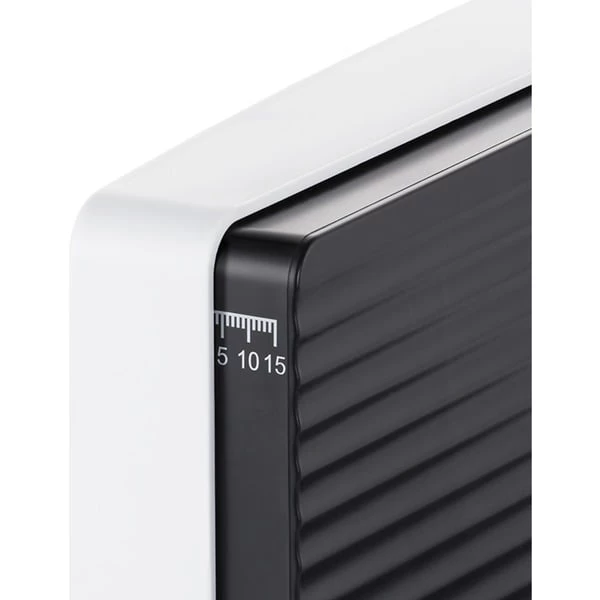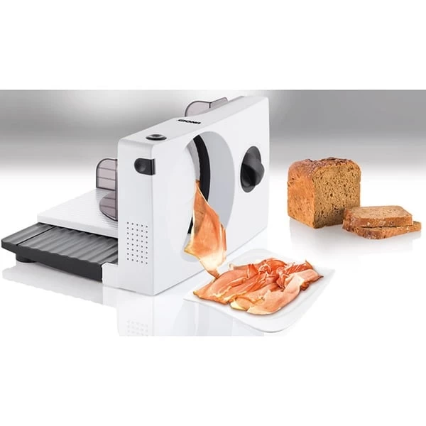 Von A wie Aufschnitt bis Z wie Zucchini: Wenn verschiedenste Lebensmittel in Scheiben geschnitten werden sollen, ist der Allesschneider Curve White unentbehrlich. Mit dem einfach entnehmbaren 17 cm Edelstahl-Wellenschliffmesser liefert der Allesschneider Curve White gleichmäßige Scheiben. Ob hauchfein bei Salami, Schinken und Co. oder dicker für knusperfrisches Brot oder köstlichen Braten, die Schnittbreite kann stufenlos von 0 bis 15 Millimeter eingestellt werden. In Sachen Sicherheit lässt der Allesschneider keine Wünsche offen. Für Sicherheit sorgen die Antirutschfüße sowie der Sicherheitsschalter mit Kindersicherung. Und der abnehmbare Restehalter mit Fingerschutz sorgt für das problemlose Schneiden ohne Reststücke – ohne Gefahr für die Fingerkuppen! Wird er gerade nicht benötigt, lässt er sich ganz einfach zusammenklappen und platzsparend im Küchenschrank unterbringen. Durch die integrierte Kabelaufbewahrung wird dafür das circa 135 Zentimeter lange Kabel perfekt verstaut.