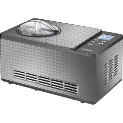 Die Limited Edition Eismaschine 48897 im geprägten Edelstahl-Design mit Kompressor-Kühltechnik hat ein Fassungsvermögen von bis zu 1,5 Liter. Die Eismaschine sorgt mit einem Gefrierbereich von ca. -18°C bis ca. -35°C für die richtige Temperatur und somit ist ein Vorgefrieren im Gefrierschrank nicht mehr nötig. Bei vorgekühlten Zutaten lässt sich so köstliche Sahneeiscreme in nur ca. 30 Minuten zubereiten. Über den praktischen Deckel mit Nachfüllöffnung können die Zutaten ganz einfach nach und nach hinzugefügt werden. Zur Ausstattung gehören ein großes LCD-Display und ein digitaler Timer. Dieser kann von 5 bis 60 Minuten einstellt werden. Dank des entnehmbaren Eisbehälters aus Edelstahl lässt sich die Eismaschine ganz einfach reinigen.