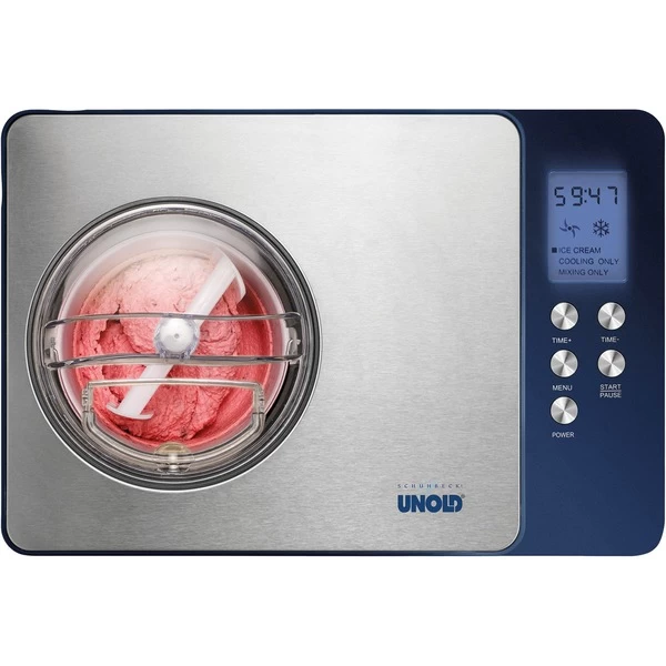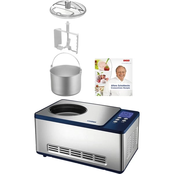 Die Eismaschine Schuhbeck exklusiv (48818) von Unold mit vollautomatischem selbstkühlenden Kompressor kann bis zu 1,5 Liter köstiche Eiscreme herstellen und überzeugt so Sternekoch, sowie Eisliebhaber gleichermaßen. Die Eismaschine Schuhbeck sorgt mit einem Gefrierbereich mit bis zu -35°C für die richtige Temperatur und somit ist ein Vorgefrieren im Gefrierschrank nicht mehr nötig. Über die praktische Deckelöffnung der Eismaschine Schuhbeck exklusiv können die Zutaten ganz einfach hinzugefügt werden und über den digitalen Timer ist sie minutengenau einstellbar. Die Eismaschine Schuhbeck hat ein elegantes und langlebiges Edelstahlgehäuse und lässt sich dank des entnehmbaren Eisbehälters aus Edelstahl ganz einfach reinigen.Art.-Nr.: 1170665