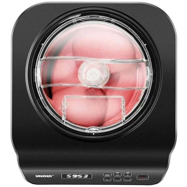 Mit der kompakten Eismaschine Uno ist der Do-it-yourself-Eisgenuss ein Kinderspiel. Sind die Zutaten vorgekühlt, lassen sich in nur 30 Minuten 1,2 Liter köstliche Sahneeiscreme zubereiten. Aber auch für vegane, laktosefreie und steviahaltige Rezepturen ist das kompakte Gerät ideal. So lassen sich beste Zutaten nach persönlichem Geschmack verarbeiten! Im ebenso eleganten wie robusten Gehäuse befindet sich der vollautomatische, selbstkühlende Kompressor, der für eine kontinuierliche Kälteerzeugung sorgt. Der Motor ist sogar für den Dauerbetrieb in der hauseigenen Eisdiele geeignet. Bis zu circa -35°C reicht der Gefrierbereich der Eismaschine Uno, die über einfach zu bedienende Tasten aktiviert wird. Das LCD-Display informiert über die Restlaufzeit und bietet auch die praktische Timer-Funktion: von 5 bis 60 Minuten einstellbar, wird das Eis zum gewünschten Zeitpunkt fertiggestellt und kann dann genussvoll weggeschleckt werden. Rezept-Inspirationen gibt es in der Bedienungsanleitung gleich mit! Durch die Deckelöffnung können weitere Zutaten zugegeben werden – Nüsse, Krokant, Fruchtstücke… Für die bequeme Reinigung sorgt der entnehmbare, eloxierte Eisbehälter.Art.-Nr.: 1528468