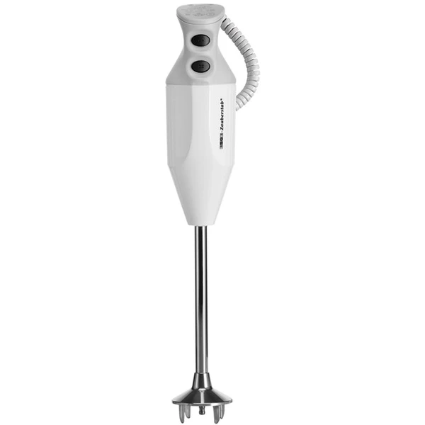 Der Unold ESGE-Zauberstab G 200 Gastro ist maßgeschneidert für die Bedürfnisse der Profiköche, denn durch die längere Antriebswelle für eine Eintauchtiefe bis circa 29 Zentimetern können mit ihm bis zu 20 Liter Flüssigkeit in einem Arbeitsgang verarbeitet. Der robuste AC-Motor sorgt für Langlebigkeit. Zur Ausstattung des Stabmixers gehören ein Multimesser, eine Schlagscheibe und eine Quirlscheibe. Durch die Aufsteckzentrierung lassen sich die Zubehörteile bequem und schnell aufstecken. Das 200 Watt starke Powerpaket mit dem Sicherheits-Twinschalter schafft wahlweise 12.000 oder 17.000 Umdrehungen pro Minute. Für Bewegungsfreiheit sorgt das circa 60 Zentimeter lange Spiralkabel, das bis zu einer Länge von bis zu 150 Zentimetern ausziehbar ist.Art.-Nr.: 1670948